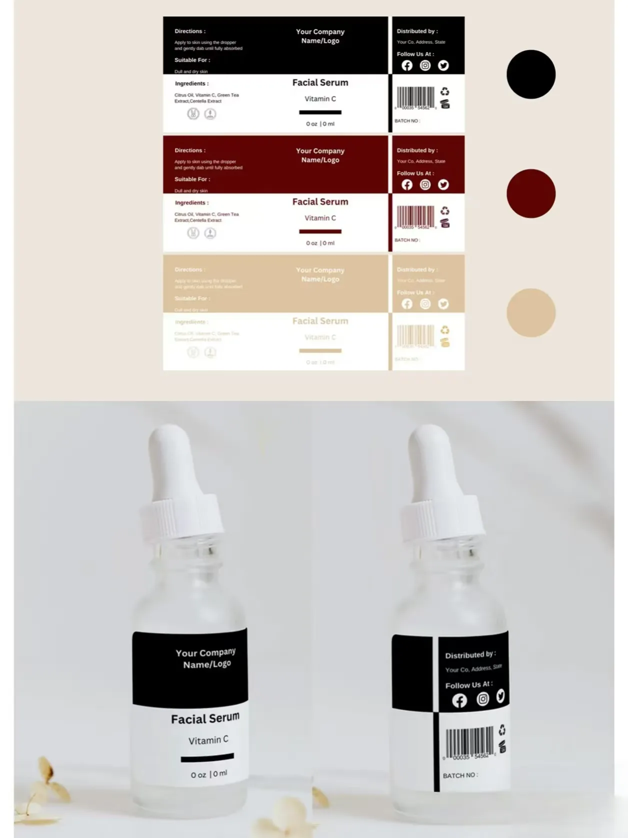 జోజో ప్యాక్20ml సీసా లేబుల్స్20ml చిన్న-సామర్థ్యం గల కంటైనర్ల కోసం ప్రత్యేకంగా రూపొందించబడిన ఖచ్చితమైన-కట్, పూర్తిగా అనుకూలీకరించిన అంటుకునే లేబుల్లు, ముఖ్యమైన నూనెలు, చర్మ సంరక్షణ సీరమ్లు, కాస్మెటిక్ నమూనాలు, ప్రయాణ-పరిమాణ టాయిలెట్లు మరియు చిన్న ద్రవ పదార్ధాల కోసం విస్తృతంగా ఉపయోగించబడతాయి. స్థూపాకార, చతురస్రం లేదా ఓవల్ 20ml సీసా ఉపరితలాలకు సరిపోయేలా రూపొందించబడిన ఈ లేబుల్లు ఉత్పత్తి బ్రాండింగ్ మరియు షెల్ఫ్ అప్పీల్ను మెరుగుపరచడానికి కంటికి ఆకట్టుకునే సౌందర్యంతో ఫంక్షనల్ అడెషన్ను మిళితం చేస్తాయి.