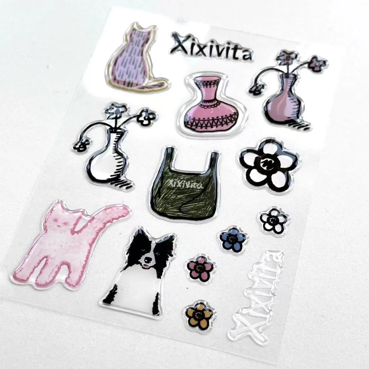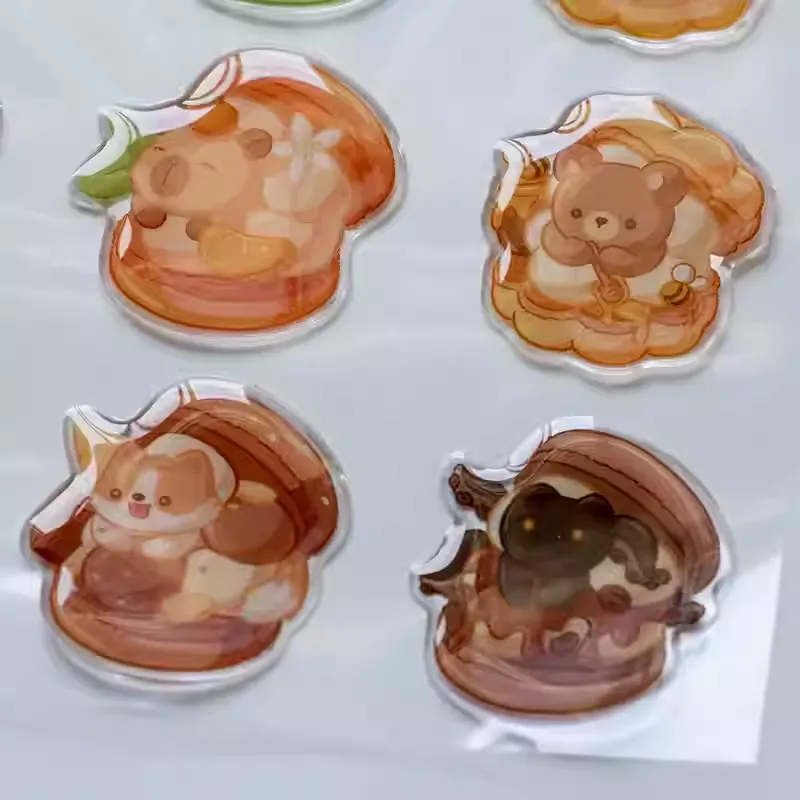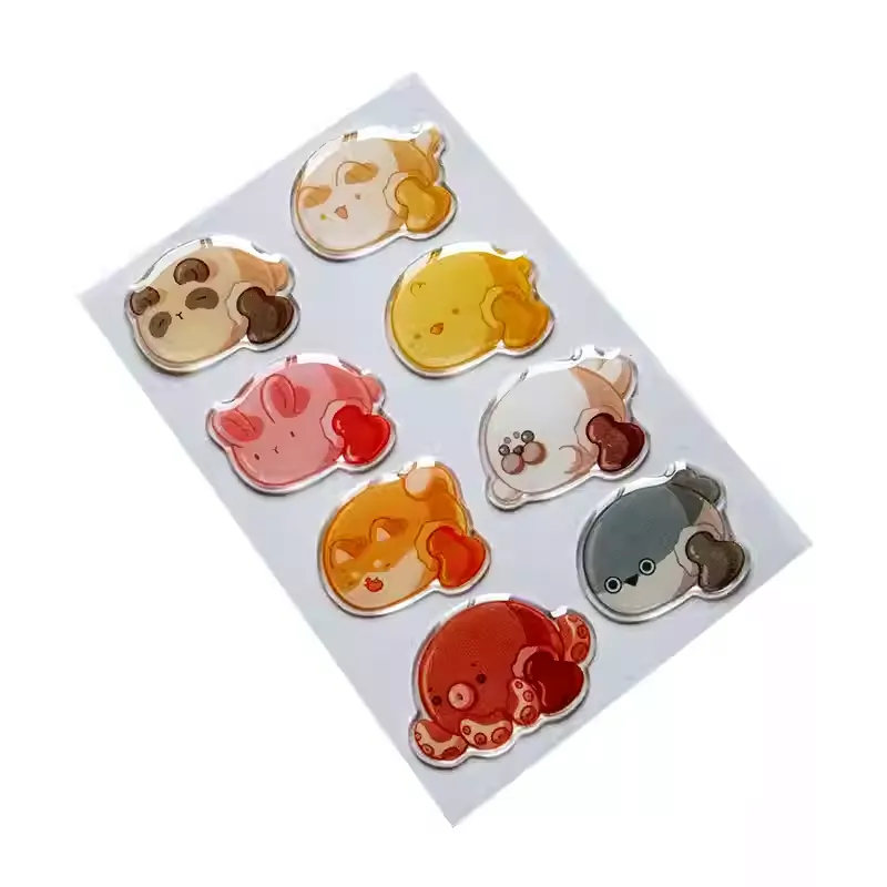 కార్టూన్ ఎపోక్సీ స్టిక్కర్ల యొక్క నిర్వచించే లక్షణం స్పష్టమైన ఎపోక్సీ రెసిన్ పూత ద్వారా సృష్టించబడిన పెరిగిన, 3D ఎపోక్సీ స్టిక్కర్ల ఉపరితలం. ఈ త్రిమితీయ ప్రభావం లోతు మరియు స్పర్శ ఆకర్షణను జోడిస్తుంది.