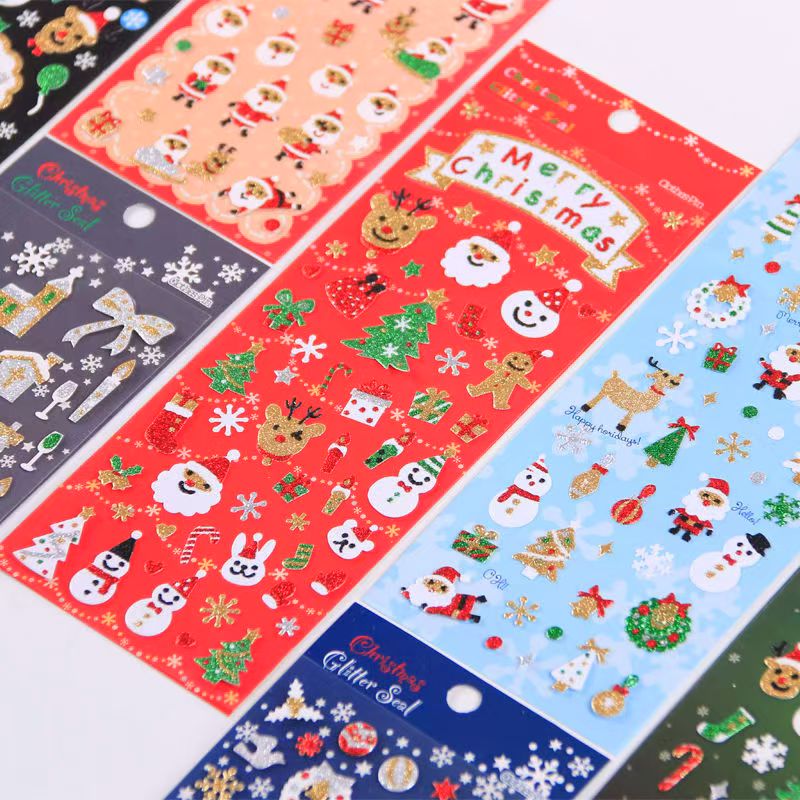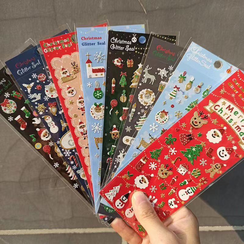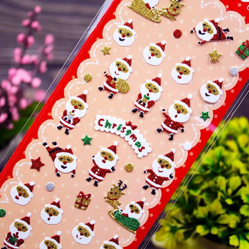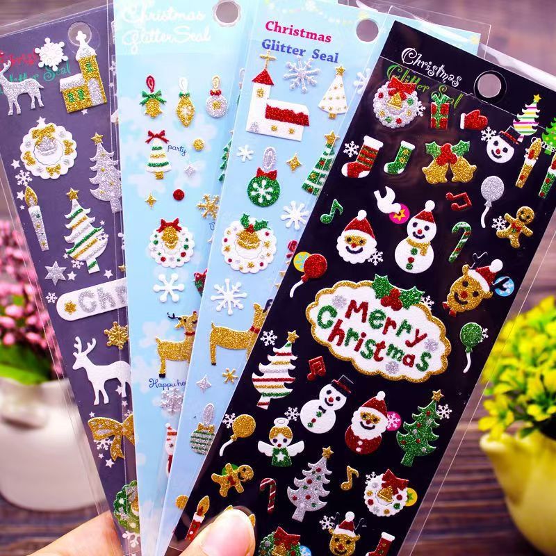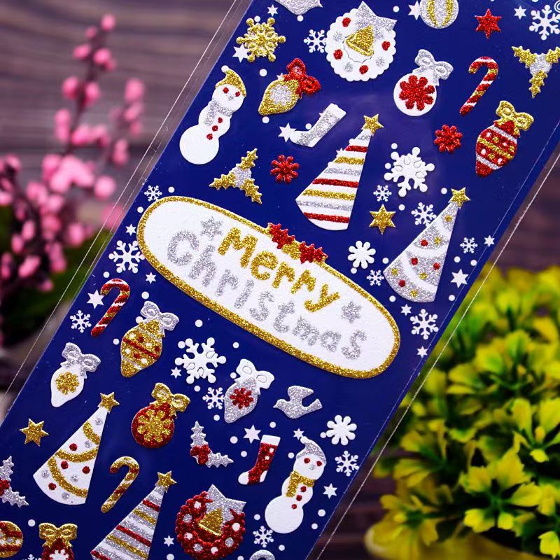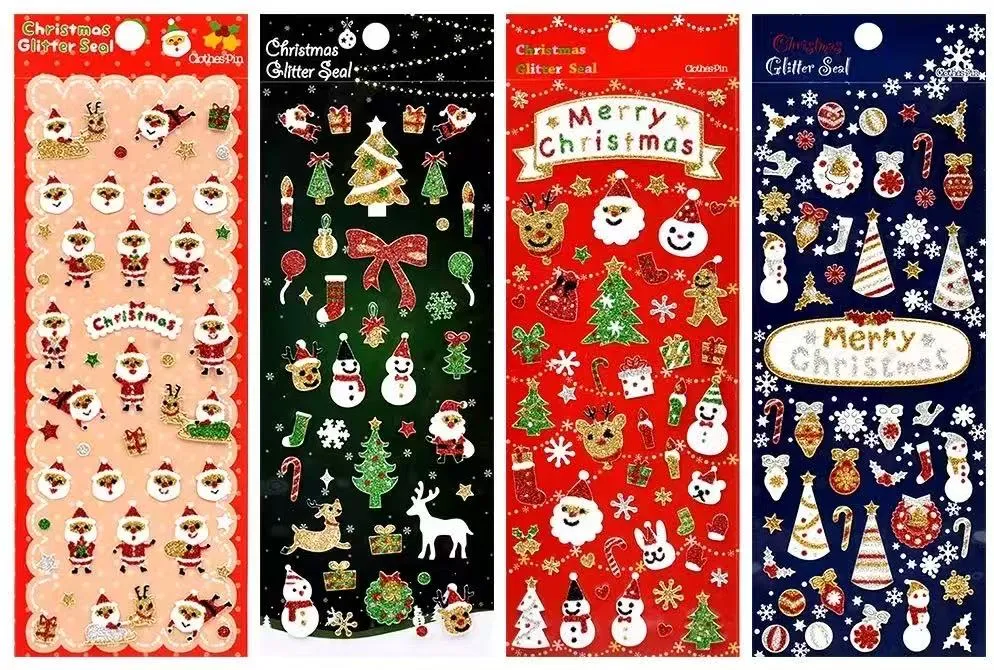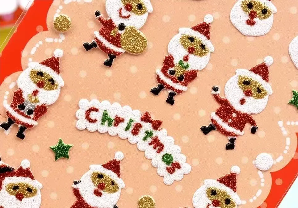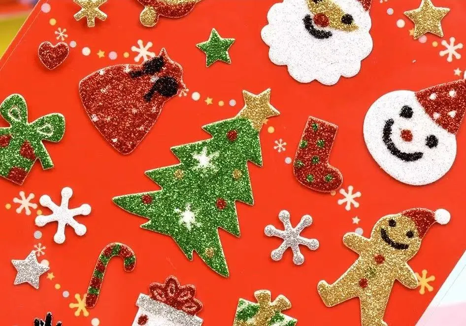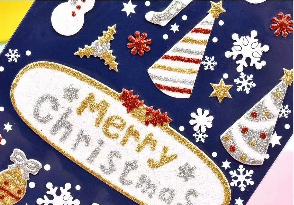 క్రిస్మస్ గ్లిట్టర్ స్టిక్కర్లు ప్లాస్టిక్, గాజు, లోహం మరియు కాగితం వంటి వివిధ మృదువైన ఉపరితలాలపై అద్భుతమైన సంశ్లేషణను సాధించగలవు.