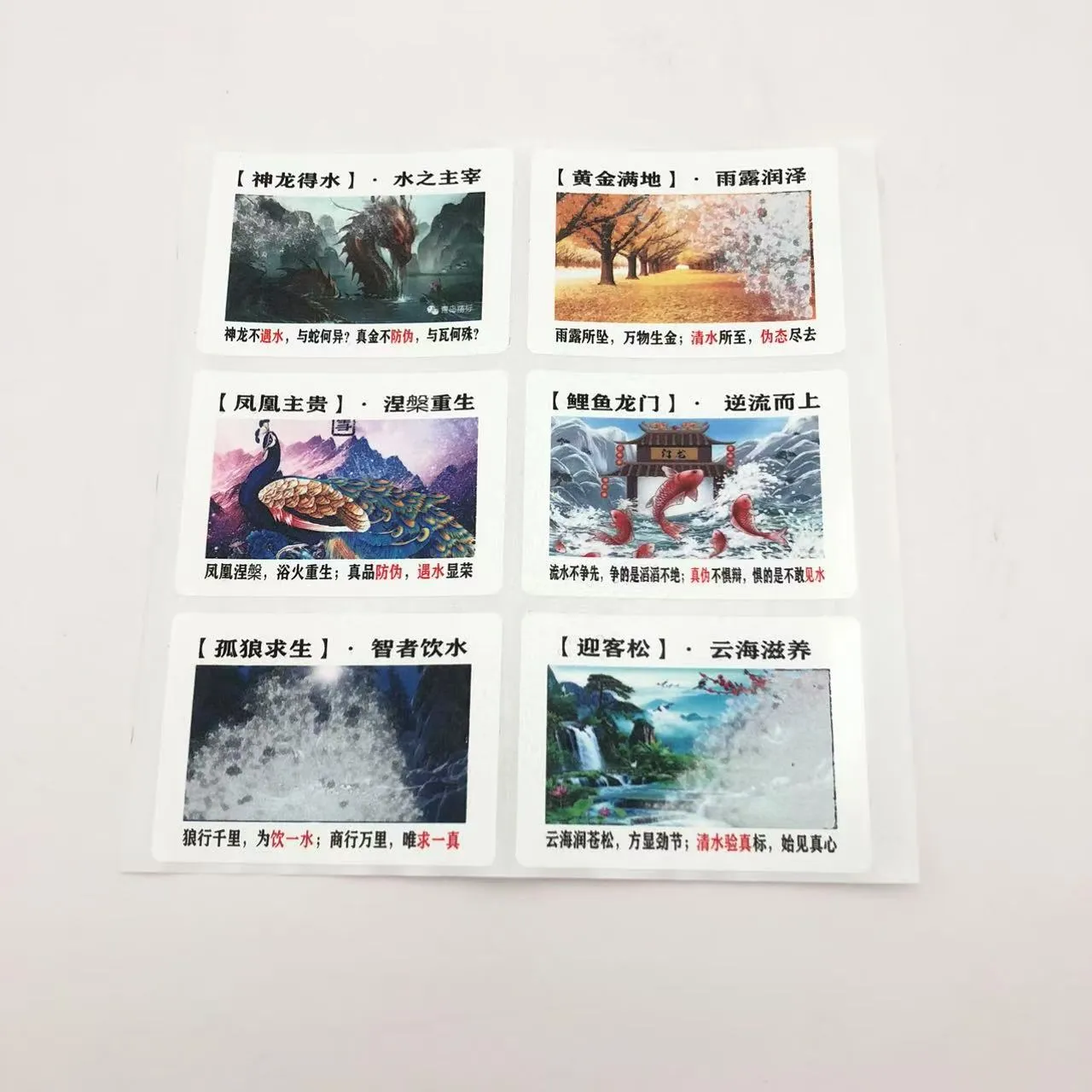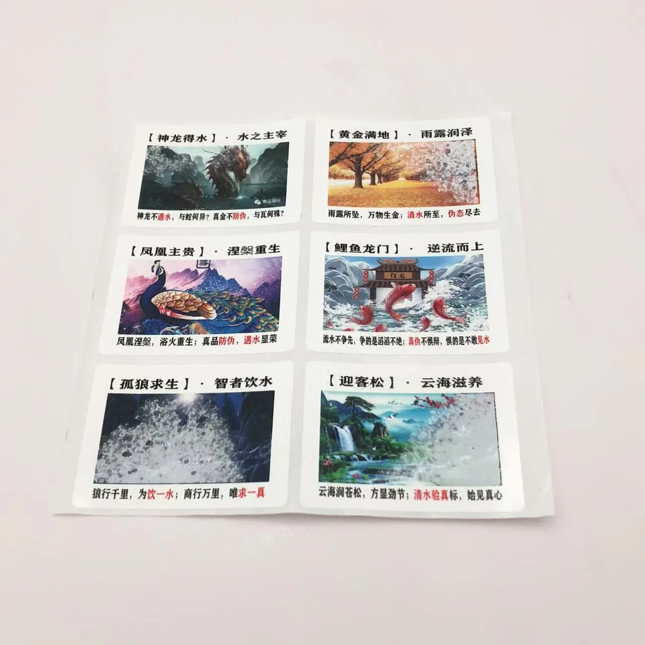 రంగు మార్పు నీటి సున్నితమైన లేబుల్లు దాచిన నమూనాలను కనిపించేలా చేయడానికి లేదా రంగు మార్పులను ప్రేరేపించడానికి సిరా మరియు నీటి మధ్య భౌతిక లేదా రసాయన ప్రతిచర్యలను ఉపయోగించుకుంటాయి. ప్రత్యేక ప్రక్రియలు మరియు పరికరాలతో ఉత్పత్తి చేయబడిన ఈ లేబుల్లు అద్భుతమైన నకిలీ వ్యతిరేక లక్షణాలను అందిస్తాయి. ఎండబెట్టిన తర్వాత, కొన్ని రకాలు వాటి ప్రారంభ స్థితికి తిరిగి వస్తాయి, పునరావృత వినియోగాన్ని ప్రారంభిస్తాయి.