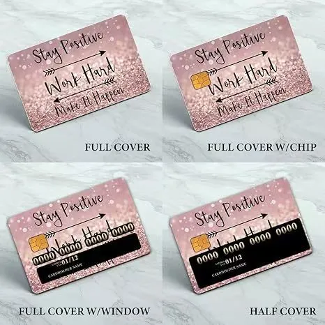 క్రెడిట్ కార్డ్ స్టిక్కర్లుపూర్తి కవర్, సగం కవర్, కార్డ్ నంబర్ లేదా చిప్ కోసం విండోతో కవర్ చేయడం మరియు మైక్రోచిప్ కోసం ప్రీ-కట్ ఏరియాతో కవర్ చేయడంతో సహా వివిధ స్టైల్స్లో వస్తాయి. పరిమాణం సాధారణంగా ప్రామాణిక పరిమాణ క్రెడిట్ కార్డ్లకు సరిపోయేలా రూపొందించబడింది, సుమారు 5.3*8.5cm.