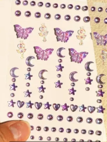 1. ఆకారాన్ని బట్టి: గుండ్రని, గుండె, చతురస్రం, కన్నీటి చుక్క, ఐదు కోణాల నక్షత్రం మరియు క్రమరహిత ఆకారాలు వంటి పది ఆకారాలను కలిగి ఉంటుంది, రోజువారీ సాధారణ రూపాల కోసం లేదా అతిశయోక్తితో కూడిన స్టేజ్ మేకప్ కోసం వివిధ అలంకరణ అవసరాలను తీర్చడం.