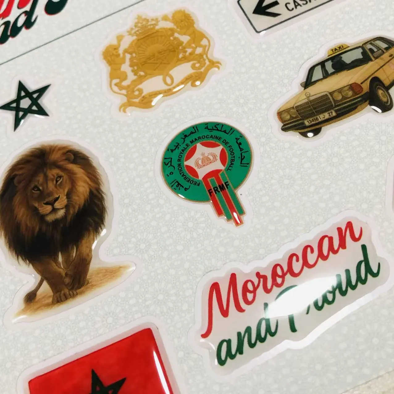 A1: మేము ప్రీమియం ముడి పదార్థాలను ఉపయోగిస్తాము: మన్నికైన అంటుకునే సబ్స్ట్రేట్లు (వినైల్, PET, లేదా పేపర్), హై-డెఫినిషన్ ప్రింటింగ్ కోసం పర్యావరణ అనుకూలమైన ఇంక్ మరియు ఇండస్ట్రియల్-గ్రేడ్ ఎపాక్సీ రెసిన్. రెసిన్ 3D డోమ్డ్ డెకాల్స్కు బలమైన స్క్రాచ్ రెసిస్టెన్స్ మరియు దీర్ఘకాలం ఉండే గ్లోస్ ఉండేలా చేస్తుంది.
