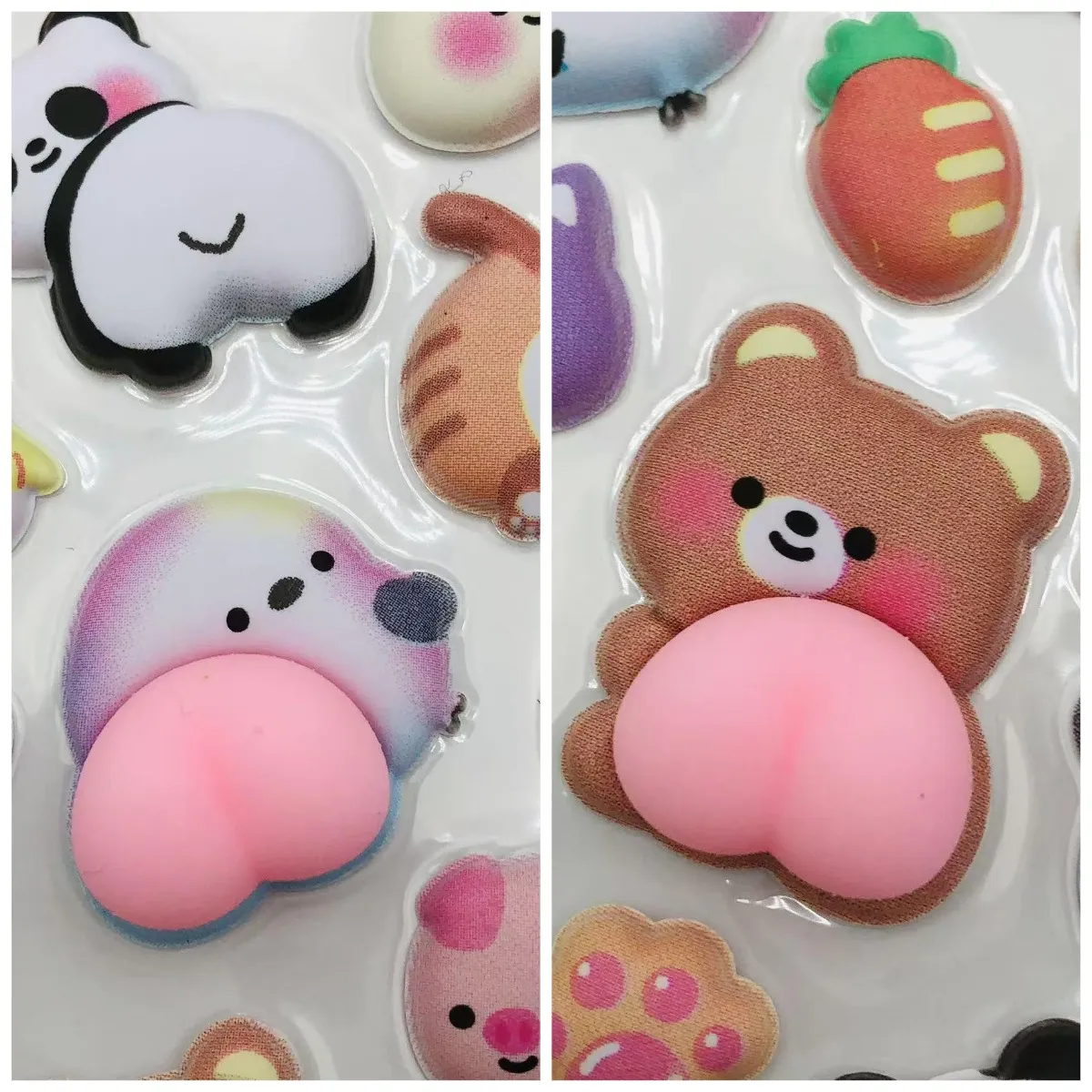 సాంప్రదాయిక ఒత్తిడి బొమ్మల వలె కాకుండా, ఈ బట్-ఆకారపు ఒత్తిడి ఉపశమన స్టిక్కర్లు వెనుక భాగంలో అవశేషాలు లేని అంటుకునే పదార్థంతో వస్తాయి, వాటిని సాధారణ స్టిక్కర్ల వలె అతికించడానికి మరియు తిరిగి ఉపయోగించేందుకు వీలు కల్పిస్తుంది. వాటిని ఫోన్లు, కంప్యూటర్లు, నోట్బుక్లు, వాటర్ బాటిల్స్, డెస్క్లు లేదా మీరు అలంకరించాలనుకునే ఏదైనా ఉపరితలానికి జోడించబడతాయి మరియు ఒత్తిడిని తగ్గించే బొమ్మగా మరియు వ్యక్తిత్వానికి ప్రత్యేకమైన వ్యక్తీకరణగా ఉపయోగపడతాయి.