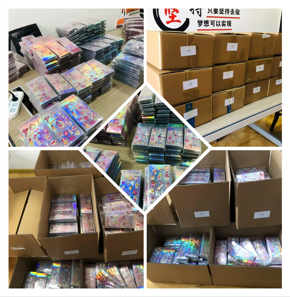 కస్టమర్లు 12 స్టైల్లను అందుకోబోతున్నారుపిల్లల షేకర్ స్టిక్కర్లునుండిజోజో ప్యాక్. ఈ స్టిక్కర్లు ప్యాక్ చేయబడ్డాయి మరియు రవాణాకు సిద్ధంగా ఉన్నాయి.