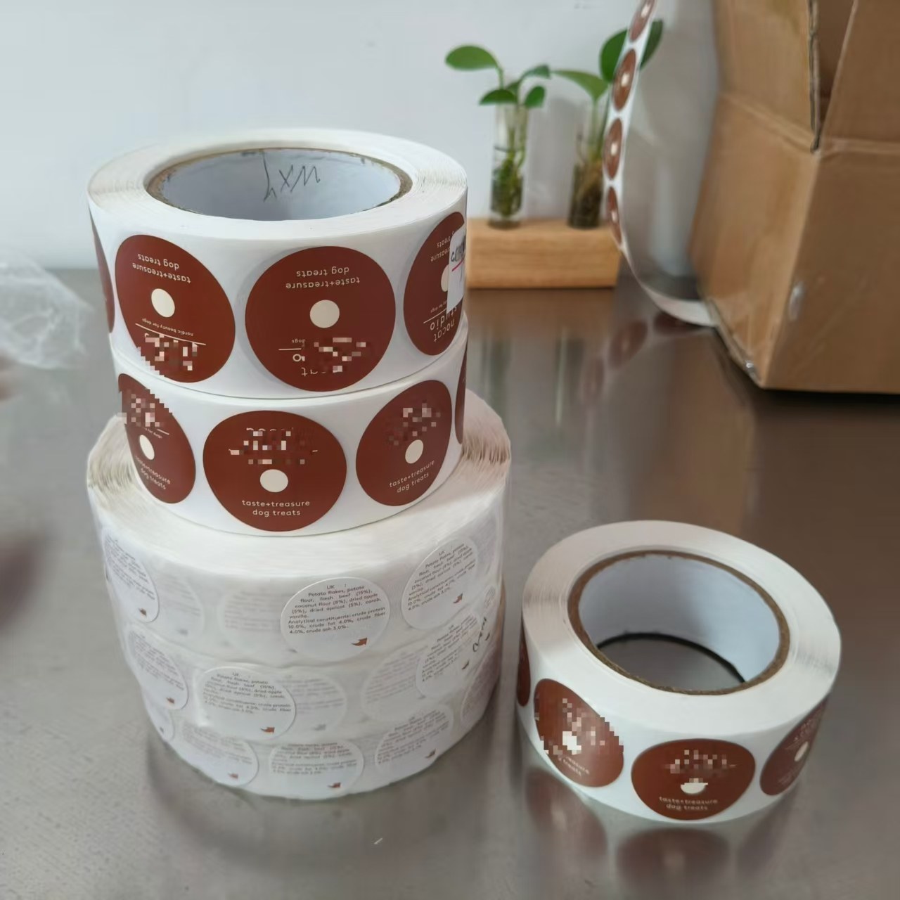 JOJO ప్యాక్ డానిష్ క్లయింట్కు కస్టమ్ డాగ్ ట్రీట్స్ స్టిక్కర్ల షిప్మెంట్ను సిద్ధం చేస్తుంది