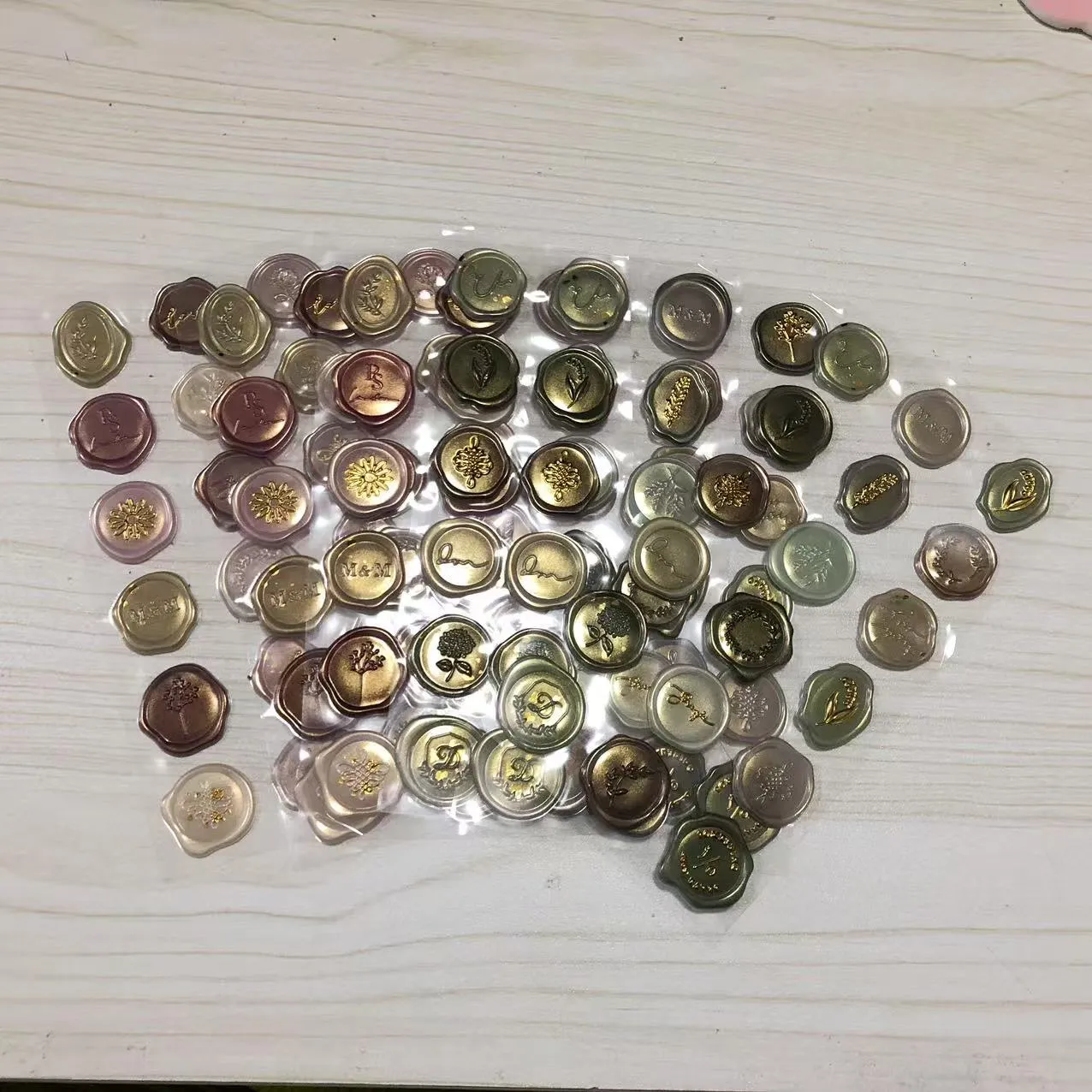ఉత్పత్తి 13 మిమీ నుండి 30 మిమీ వరకు వ్యాసాలతో వివిధ స్పెసిఫికేషన్లలో అందుబాటులో ఉంది మరియు పురాతన కాంస్య, బుర్గుండి, బంగారం మరియు వెండితో సహా వివిధ రకాల అలంకార అవసరాలకు అనుగుణంగా రంగుల శ్రేణిలో వస్తుంది. వివాహ ఆహ్వానాలు, వ్యాపార లేఖలు లేదా స్క్రాప్బుకింగ్ కోసం ఉపయోగించినప్పటికీ, అవి ప్రత్యేకమైన కళాత్మక స్పర్శను జోడిస్తాయి.