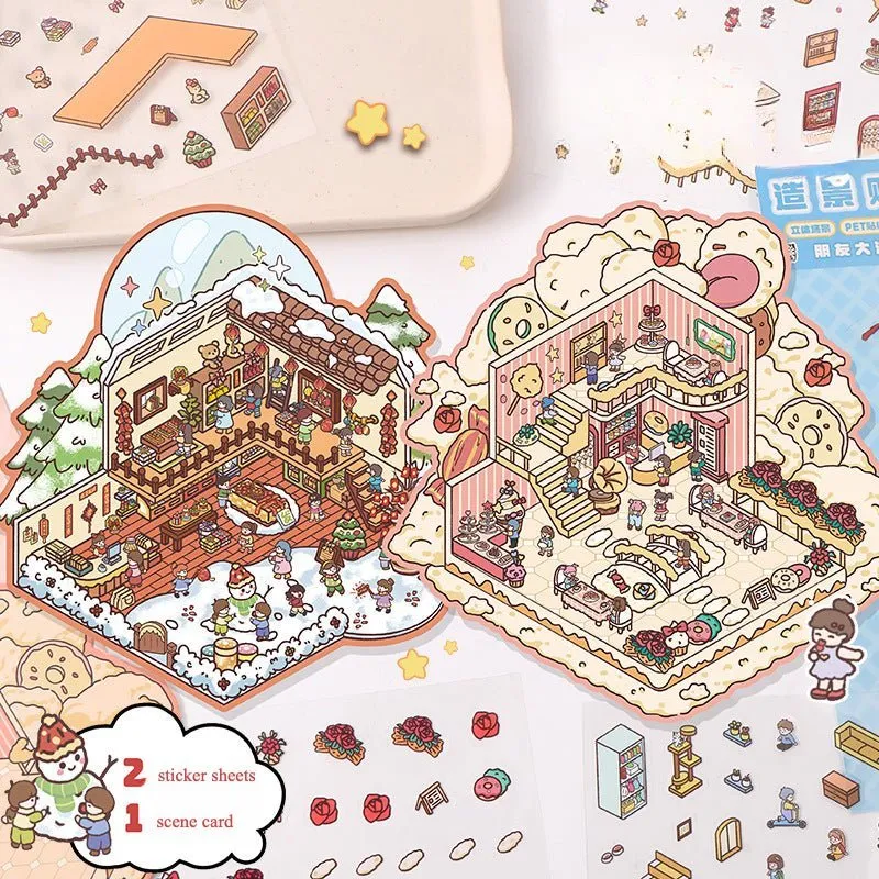 పిల్లలు కిచెన్, బెడ్ రూమ్ మరియు గార్డెన్ వంటి వివిధ దృశ్యాలను స్వేచ్ఛగా మిళితం చేయవచ్చు, బ్లాక్లతో నిర్మించినట్లే వారి స్వంత డ్రీమ్ కాటేజీలను నిర్మించవచ్చు. అతికించడం మరియు స్టాకింగ్ వంటి ఇంటరాక్టివ్ పద్ధతుల ద్వారా స్టిక్కర్లు త్వరగా ఒత్తిడిని తగ్గించగలవు.