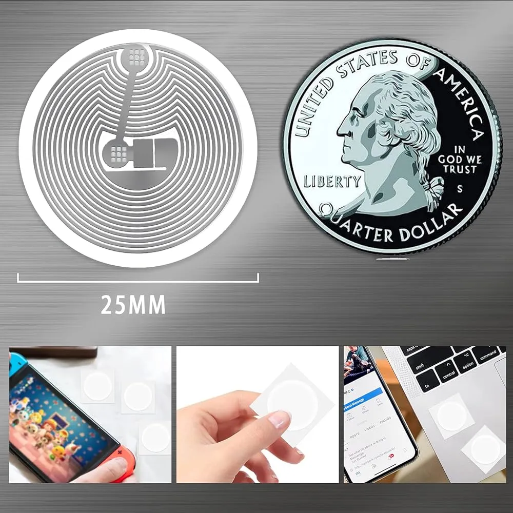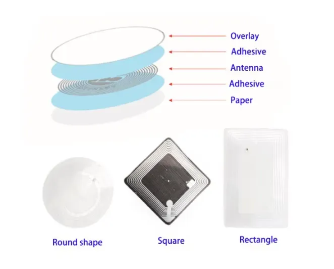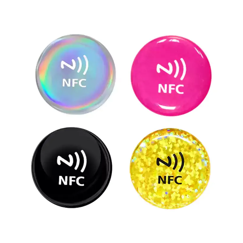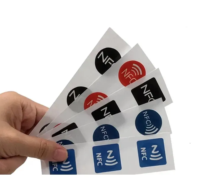 పరిమాణం మరియు రూపం: NFC స్టిక్కర్లు చిన్నవి. అవి తరచుగా గుండ్రంగా ఉంటాయి మరియు నాణెం యొక్క పరిమాణం గురించి. ఒక వైపు జిగురు ఉంది, కాబట్టి మీరు వాటిని పోస్టర్లు, రిస్ట్బ్యాండ్లు లేదా వ్యాపార కార్డులు వంటి వాటిపై సులభంగా అంటుకోవచ్చు.
