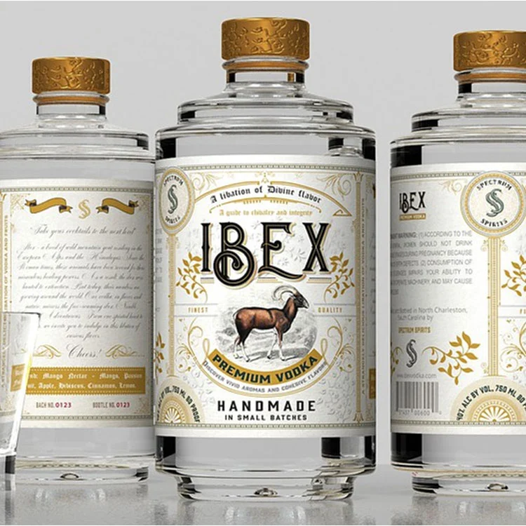 ప్రత్యేక పదార్థాలు:బ్రాండ్ యొక్క లక్షణాలను హైలైట్ చేయడానికి, బ్రాండ్ యజమాని రేకు, ఎంబోస్డ్ పేపర్ లేదా కలప పదార్థాలు వంటి ప్రత్యేక పదార్థాలను ఉపయోగించడానికి ఎంచుకోవచ్చు. ఈ పదార్థాలు వోడ్కా సీసాలకు ప్రత్యేకమైన దృశ్య మరియు స్పర్శ అనుభవాన్ని అందించగలవు.